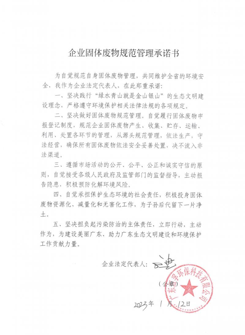 企業(yè)固體廢物規(guī)范管理承諾書(shū)
